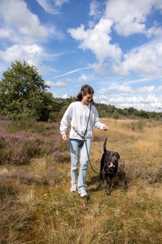 Kies uit twee praktische lengtes – 1,5 meter voor een gezellige en comfortabele controle tijdens dagelijkse wandelingen en 2,3 meter voor avontuurlijke ontdekkingsreizen met meer bewegingsvrijheid. De Standaard riem is 1,5 m lang, heeft een clip om aan de halsband of tuig van je hond te bevestigen en aan de andere zijden een lus met een ring om eventueel poezakjes houder of andere accessoires aan te bevestigen. De handsfree riem is 2,30 m lang, heeft aan beide uiteinden een clip. Het touw heeft verder 2 verstelbare O-ringen waarmee je de handsfree in elke gewenste lengte kunt maken. Dit maakt onze hondenriemen  niet alleen stijlvol maar ook veelzijdig. Gebruik ze om je hond vast te houden, als korte lijn voor meer controle of als tijdelijke riem wanneer je even je handen vrij wilt hebben.